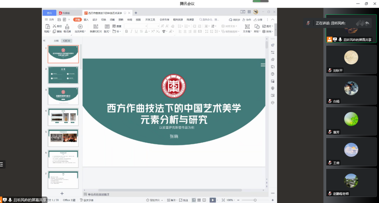 2022年11月23日,公海gh555000aa线路检测青年学者学术论坛第四场《西方作曲技法下的中国艺术美学元素分析与研究》通过线上腾讯会议展开。此次讲座由公海gh555000aa线路检测张晓博士主讲,全体教师和部分员工代表参加。
