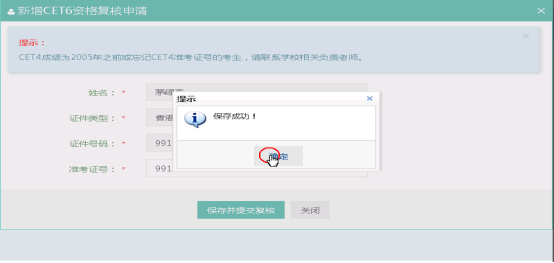 填写考生的四级准考证号,如果准考证号正确,那么姓名和证件号码任意一项正确就可以自动审核通过。