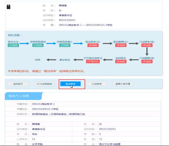 选择要报考的科目,点击“提交”按钮,返回到考生报名页面,点击“口试报考”
