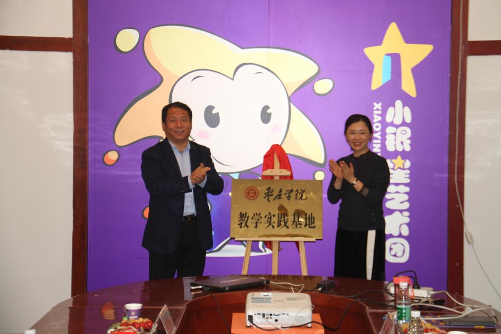最后,公司李永经理与南京小银星艺术团薛雅琳团长进行了实习基地揭牌仪式并合影留念。