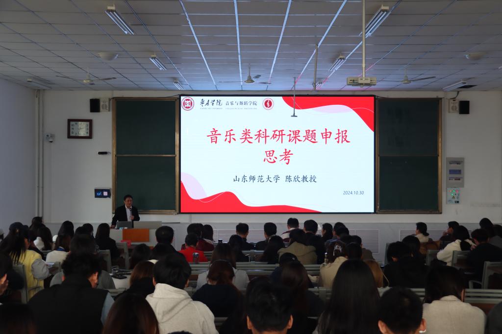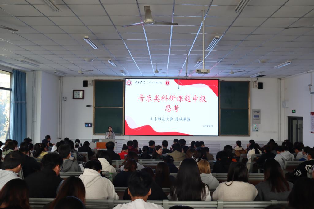 10月30日下午,山东师范大学博士生导师陈欣教授应邀来公海gh555000aa线路检测作学术报告。报告在薛城校区增信楼112报告厅举行。公海gh555000aa线路检测全体专任教师及音乐学专业员工参加,报告会由吴蕾经理主持。