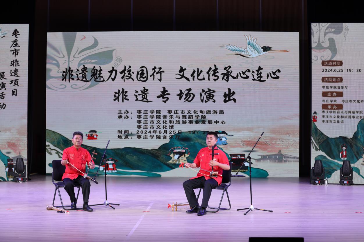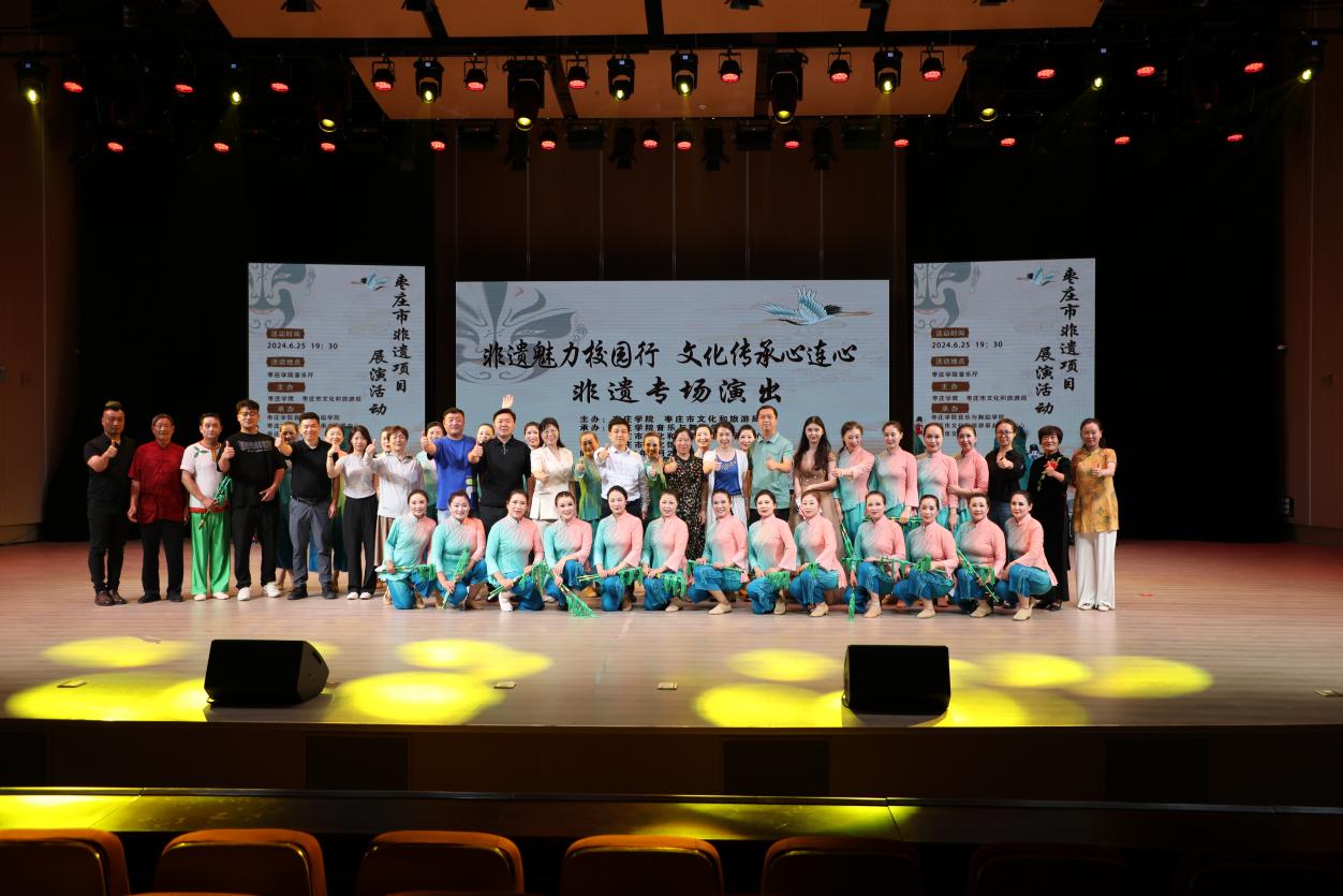 6月25日,由公海gh555000aa线路检测、枣庄市文化和旅游局主办,公海gh555000aa线路检测、枣庄市文化和旅游事业发展中心、枣庄市文化馆协办的“非遗魅力校园行,文化传承心连心”枣庄市非遗项目展演活动在公司音乐厅上演。此次活动旨在传承和弘扬地方优秀传统文化,增强师生民族自豪感、责任感,树立文化自信,进一步引导教师将地方优秀传统文化融入教学、开展科研的积极性,促进非遗项目在年轻一代中的传播。