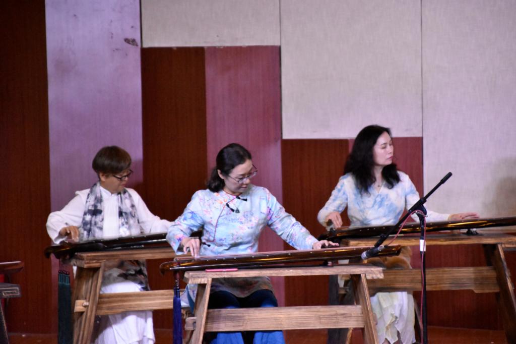 琴声乍起,朔风萧萧。琴箫合奏《卧龙吟》、《普庵咒》,清扬婉转,在古琴乐中含光隐耀,和光同尘,交织出古朴圆润的乐章。古琴独奏曲《梅花三弄》,此曲古淡清幽的曲调展现梅花玉骨冰肌,独自盛开之风情,堪称千古梅花之绝唱。赵燕老师所演奏的《流水》,曲中流水时而活泼潆洄、若幽涧鸣泉,喻示着大自然生命力的延伸与永恒。本场古琴演奏淋漓尽致地展现了各位老师深厚的演奏功力。
