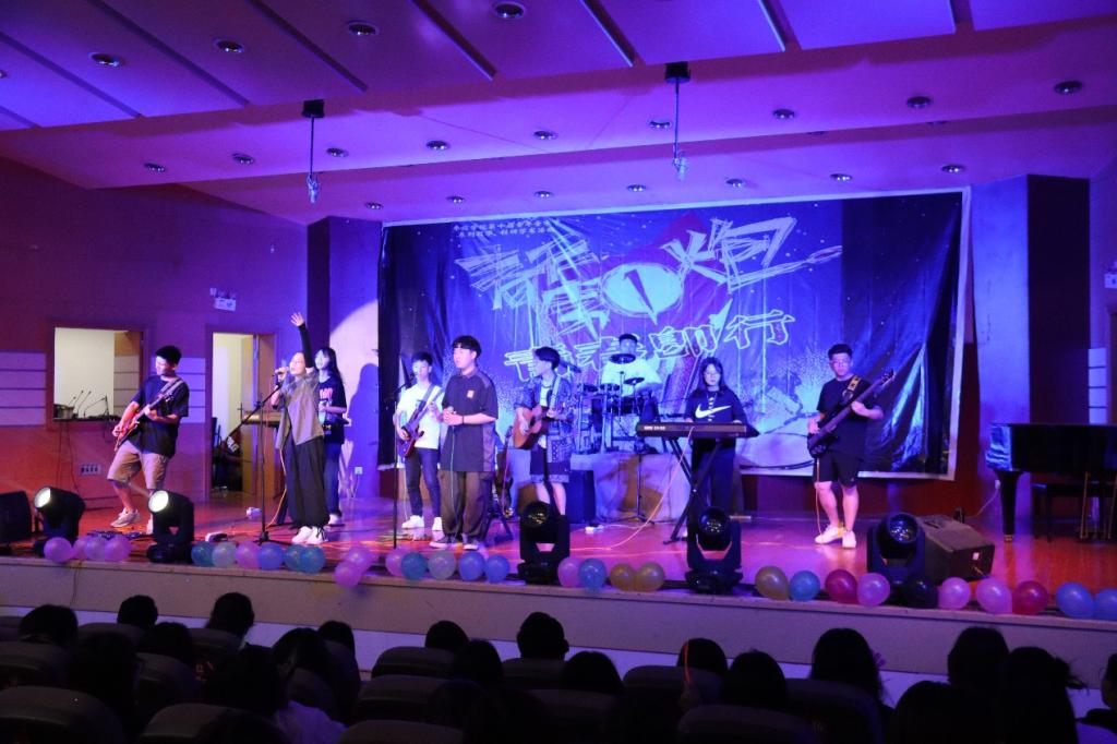 音乐厅内欢声笑语、青春激扬,新青年乐队以《我们的时光》开场,点燃了全场气氛,演出过程中伴随着掌声和欢呼声,流行乐团的同学们在舞台上尽情的挥洒着青春和热情,带动全场高潮迭起。同学们手中的荧光棒和闪光灯如点点繁星,组成了青春里最美的夜空,用激情和热血描绘了青春应有的灿烂与热烈,最后一首大合唱《夜空中最亮的星》让全场沸腾,为演出画上了圆满的句号。