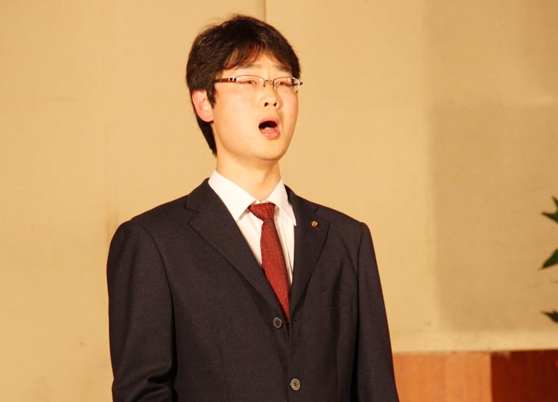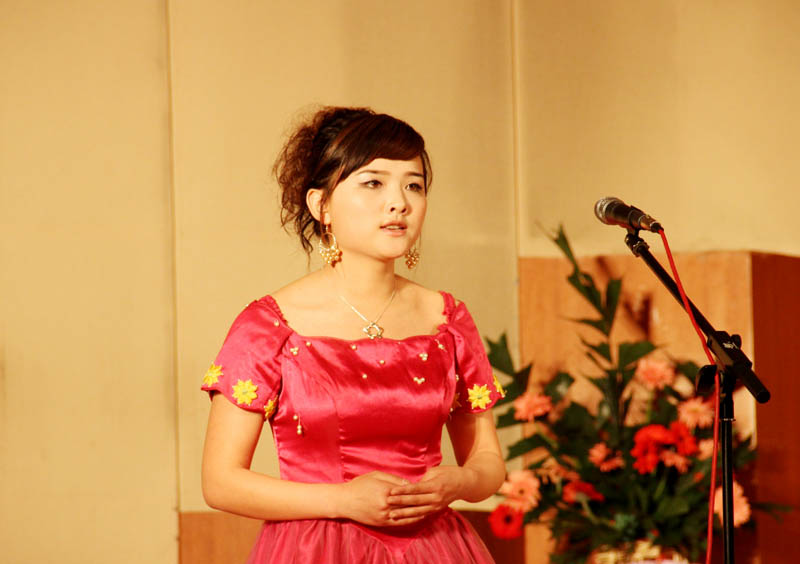 晚上7:00,音乐会正式拉开帷幕。一首婉转甜美的《赛吾里麦》渲染了全场气氛。接下来两位女生用甜美的音色演绎出美丽和谐的《年轻姑娘应该懂得》《求爱神给我安慰》。与女声的柔美细腻相比,男声独唱《大江东去》尽显豪情。演唱《妈妈您快留步》的员工饱满的深情感染了在座的每一位观众。后面的《我爱这土地》、《断桥遗梦》《军营飞来一只百灵》《草原之夜》等歌曲,演唱者或是对大自然亲切的描绘,或者是对生活真挚的赞美,显示出演唱者不凡的歌唱技巧和超凡的音乐表现力,他们激情澎湃,充满着自信,动人的歌声在音乐厅内回荡。