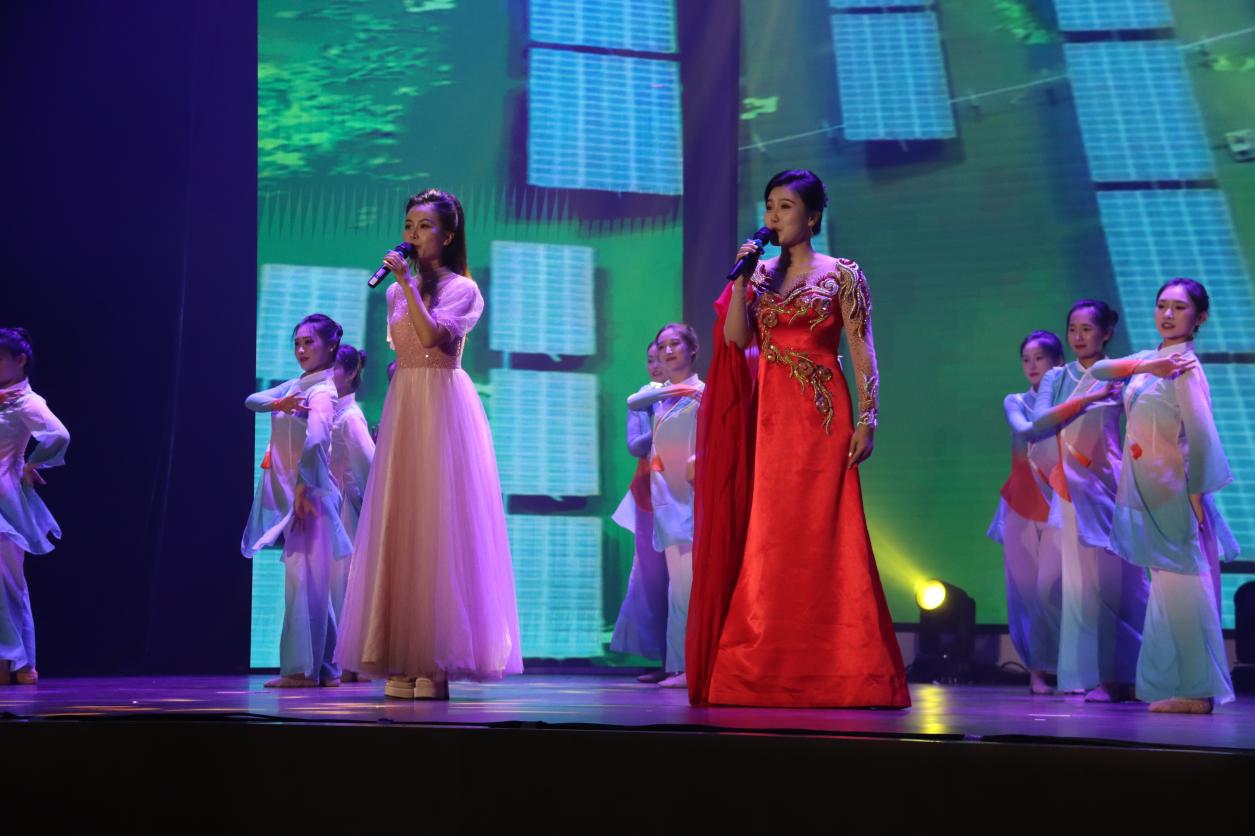 枣庄风光无限好,石榴满园映日红。公司青年教师闫晓萌、王楠楠带来歌曲《诗画枣庄石榴红》。