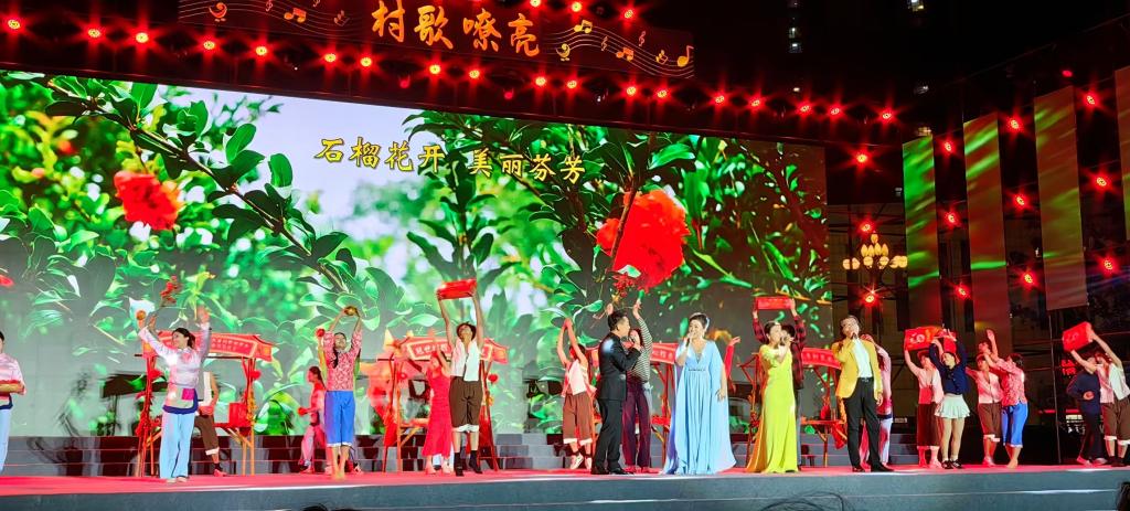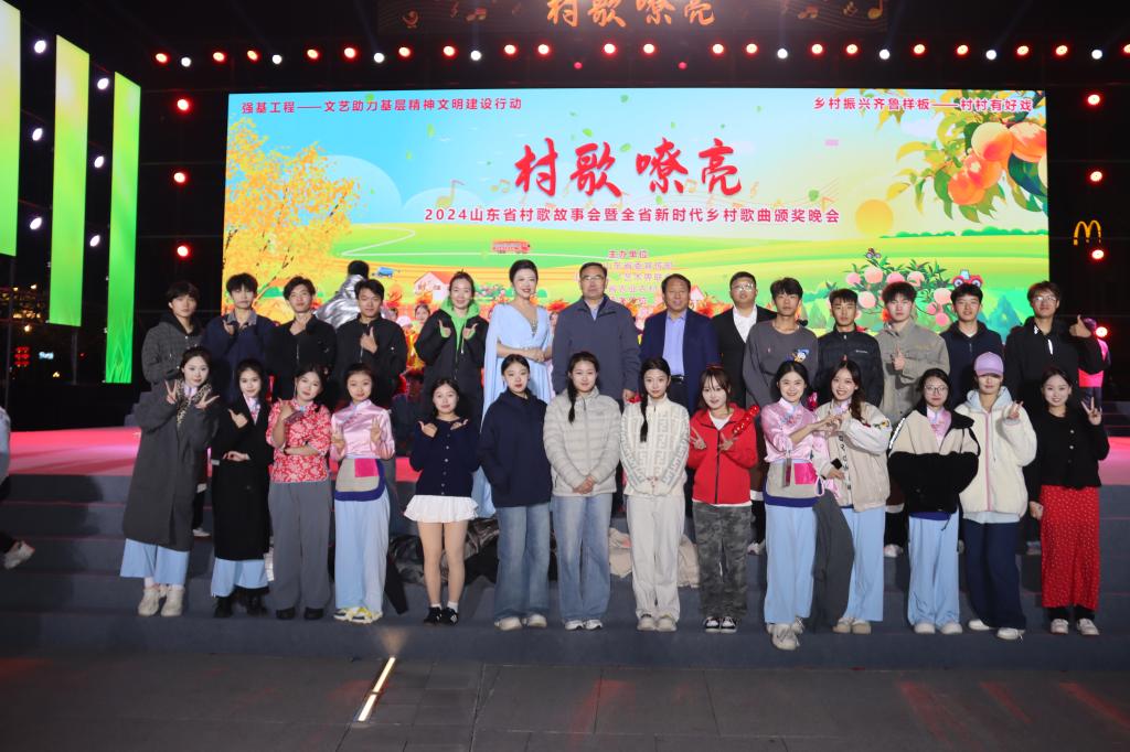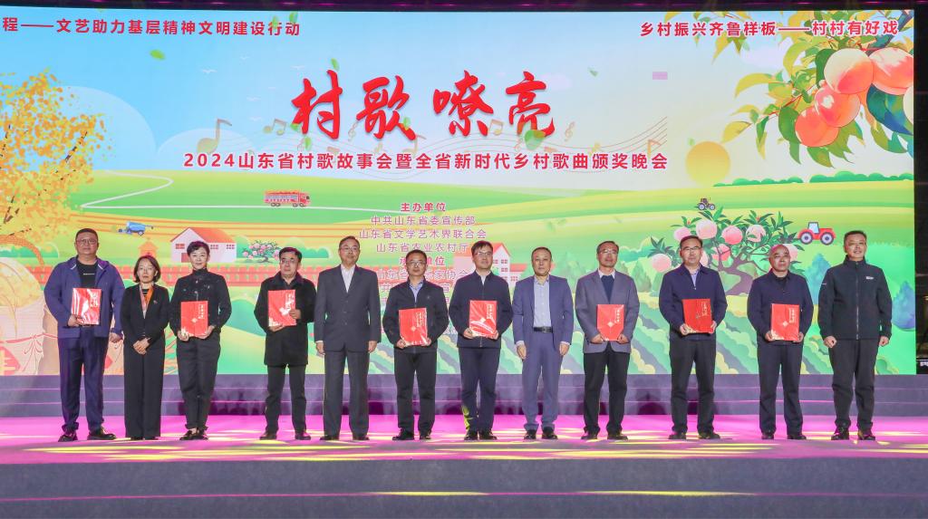 10月19日,村歌嘹亮·2024山东省村歌故事会暨全省新时代乡村歌曲颁奖晚会在泰安市肥城市民中心举行,本次活动由中共山东省委宣传部、省文联、省农业农村厅主办,省音乐家协会等承办。省委宣传部二级巡视员张景宗,省文联党组书记、副主席何思清,省文联党组成员、副主席马述兴,省农业农村厅乡村振兴督查专员毕海昕,省委社会工作部山东省志愿服务指导中心主任刘晓明及泰安市有关领导,枣庄市文联党组书记、主席李景龙,公海gh555000aa线路检测公司党委书记、枣庄市音乐家协会主席李永等出席活动。来自全省各地的近400名基层文艺工作者、爱好者与多位知名艺术家同台演出,公海gh555000aa线路检测红石榴艺术团原创歌曲情景剧《石榴花开贵客来》代表公海gh555000aa线路检测、枣庄市文联精彩亮相,演出期间进行了颁奖,枣庄市荣获“村歌嘹亮·2024山东省新时代乡村歌曲创作征集展演活动”优秀组织奖。