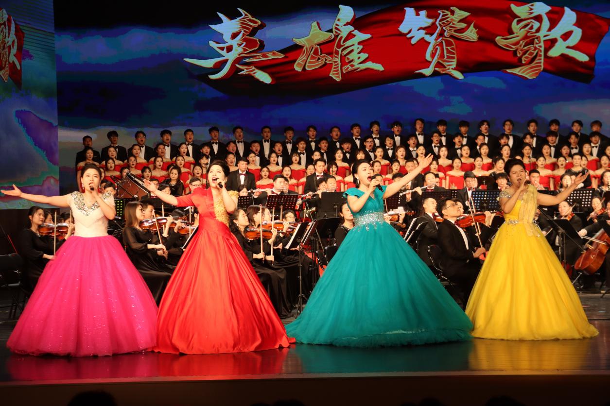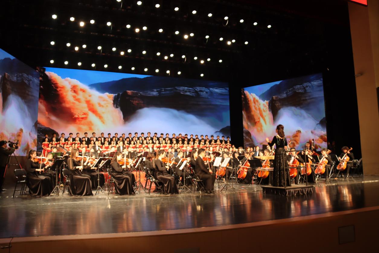 雪花漫卷、黄河咆哮,烽烟滚滚、大海扬波,万泉河水、优美清澈,《保卫黄河》《红色娘子军》《英雄赞歌》《江山》等红色经典旋律依次唱响,排山倒海的气势、穿透人心的力量,铺开了一幅广阔无垠、山河无际的壮丽画卷,铿锵有力的时代强音响彻枣庄大剧院的穹顶。