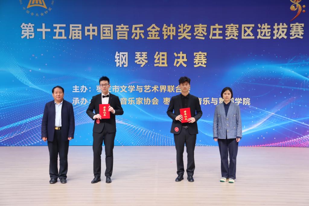 经过评委专家的严格评审,朱婧晗、孙伟华航、张莹3位选手成绩优异、脱颖而出,将代表枣庄市参加山东省选拔赛。详细名单如下:钢琴组一等奖获得者朱婧晗、 二等奖获得者孙伟华航、三等奖获得者董骐颉、乔子恒。古筝组二等奖获得者张莹。