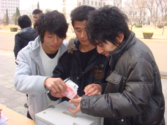 新学期伊始,音乐系的老师和同学们得知了丁建超出事的消息,纷纷到医院探望,吹奏他最喜欢的萨克斯,讲公司里发生的事情,希望能够唤醒他的意识。悲痛之余,在丁建超几个同班同学的发起下,音乐系举办了捐款活动,不到三天的时间,音乐系师生共捐款1.5万元。然而,对每天上千元的医疗费用而言,这些钱是微不足道的。音乐系的同学们决定在全校发起捐款活动,这一做法得到了系领导、院团委的大力支持,他们将丁建超的病情、照片能过QQ、校内网、宣传栏等方式传达给全院师生。3月24日,捐款活动在公司小广场进行,捐款同学络绎不绝,虽然当天阴雨绵绵,但每一份爱心充盈着公司,一百、五十、十元……有的同学甚至拿着存钱罐去捐款。音乐系的郭兰同学家庭条件并不好,每月的生活费仅为200元,当天地把自己仅有的196元钱全都捐了出来,着实感动了现场的同学。当然,丁建超的病情更牵动着公司每一位领导的心。3月26日,公司党委副书记胡小林带着全校师生的关切和大家的爱心捐款,来到了医院看望了丁建超。音乐系党委书记王勤晓、副书记李永号召全系老师捐款,全力支持组织各种捐款活动,多次来到医院探望了解丁建超的病情。只要是有助于丁建超康复的事情,无论大小,他们都要尽最大力量帮助他。