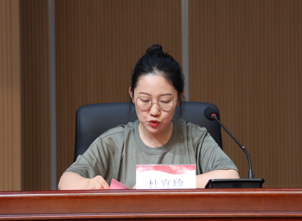 院团委书记、学工办主任刘丹丹宣读2024年员工军训实践课考核办法,详细介绍了课程目的、课时数及课程内容,以及优秀连队与军训先进个人评选办法。