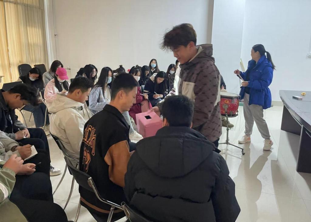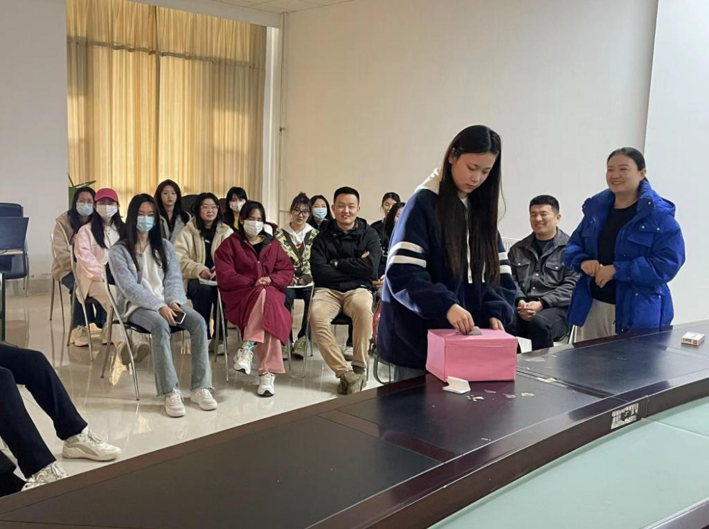 活动分为两部分,首先以游戏形式进行负面情绪调解,组织参与同学将近期烦恼和心事匿名写在纸条上,以击鼓传花的方式选择同学抽取纸条,读出纸条上的内容,并发表自己的见解,所有同学群策群力,出谋划策,化解负面情绪。第二环节进行夸奖环节,所有参与同学匿名写出夸奖纸条,由主持人将夸奖纸条送到被夸奖人手中,培养员工积极向上,乐观自信的心理品质,促进人格健全发展。