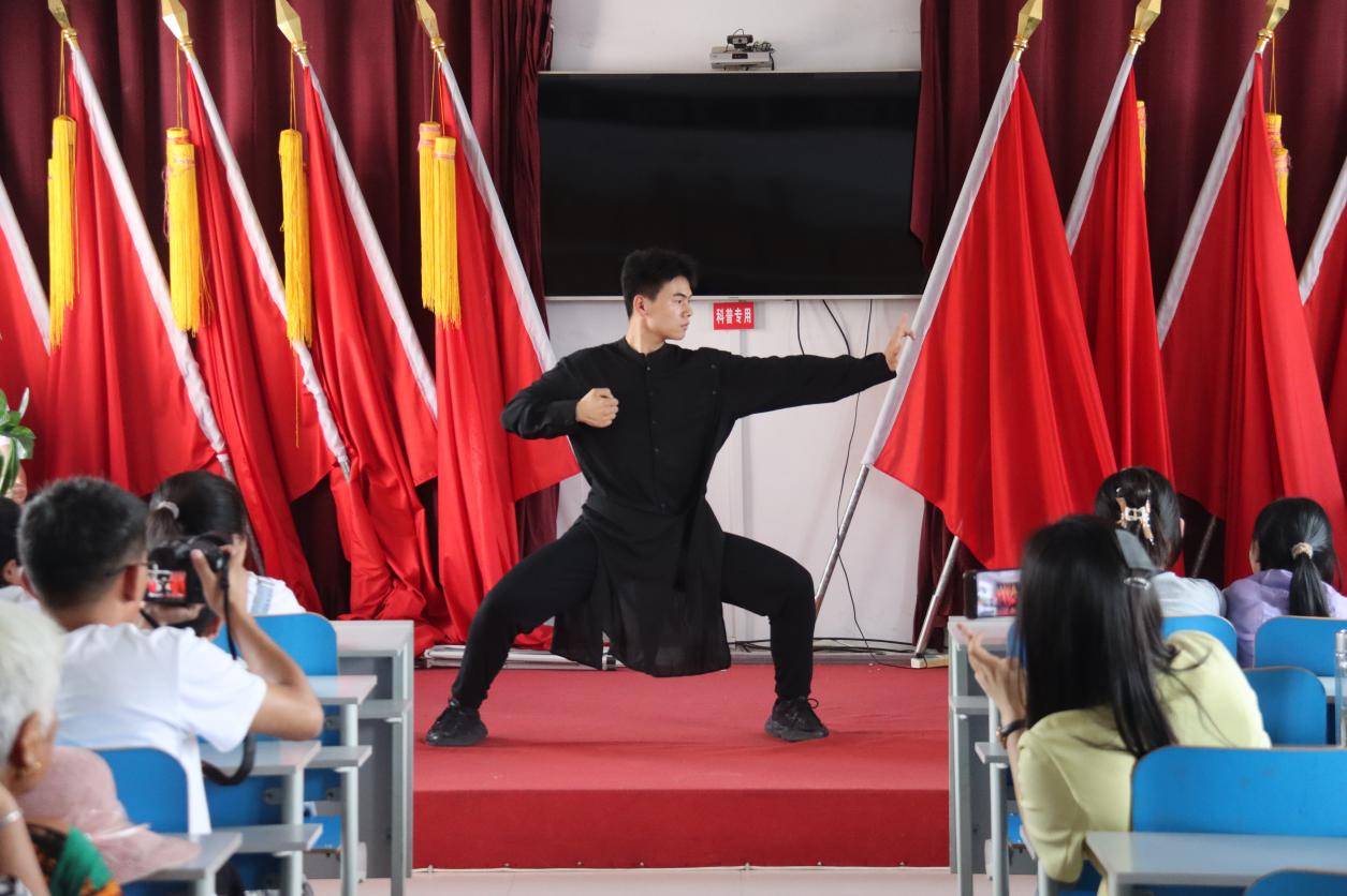 揭牌仪式后公司“红石榴”志愿服务队为村民们带来了精彩的演出。美声独奏《祖国慈祥的母亲》唱出了中华儿女对祖国母亲的无比热爱;男生合唱《上春山》歌唱出了祖国的大好河山表达了对春天的期盼和对生活的热爱;笛子独奏《扬鞭催马运粮忙》描绘了丰收后农民喜气洋洋的样子;柳琴独奏《剑器》让大家感受到了武侠气势和刚柔并济的美感;二胡二重奏《赛马》表现了蒙古族人民的顽强、勇敢的精神和对美好生活的向往;美声独唱《定风波》唱出了一种豁达洒脱无畏风雨乐观面对人生起伏的精神境界;民乐合奏《大鱼》展现了生命的辽阔以及成长的蜕变;美声独唱《驼铃》唱出了战友之间深厚的情谊和离别时的不舍与牵挂;这一系列深情的歌曲演唱、激昂的乐器演奏,余音绕梁,不绝于耳。群舞《石榴花开》展现了两代灯艺人的艺术人生、精神风貌;群舞《次仁拉索》表现出了藏族风情、欢快热情以及劳动与生活;太极表演《天下安河桥》展现出了太极气韵和精神内涵以及中华上下五千年优秀传统文化。小合唱《弹起我心爱的土琵琶》唱出了革命先烈的英勇和顽强。台下的村民们时而陶醉其中,时而随着节奏鼓掌喝彩,现场气氛热烈。