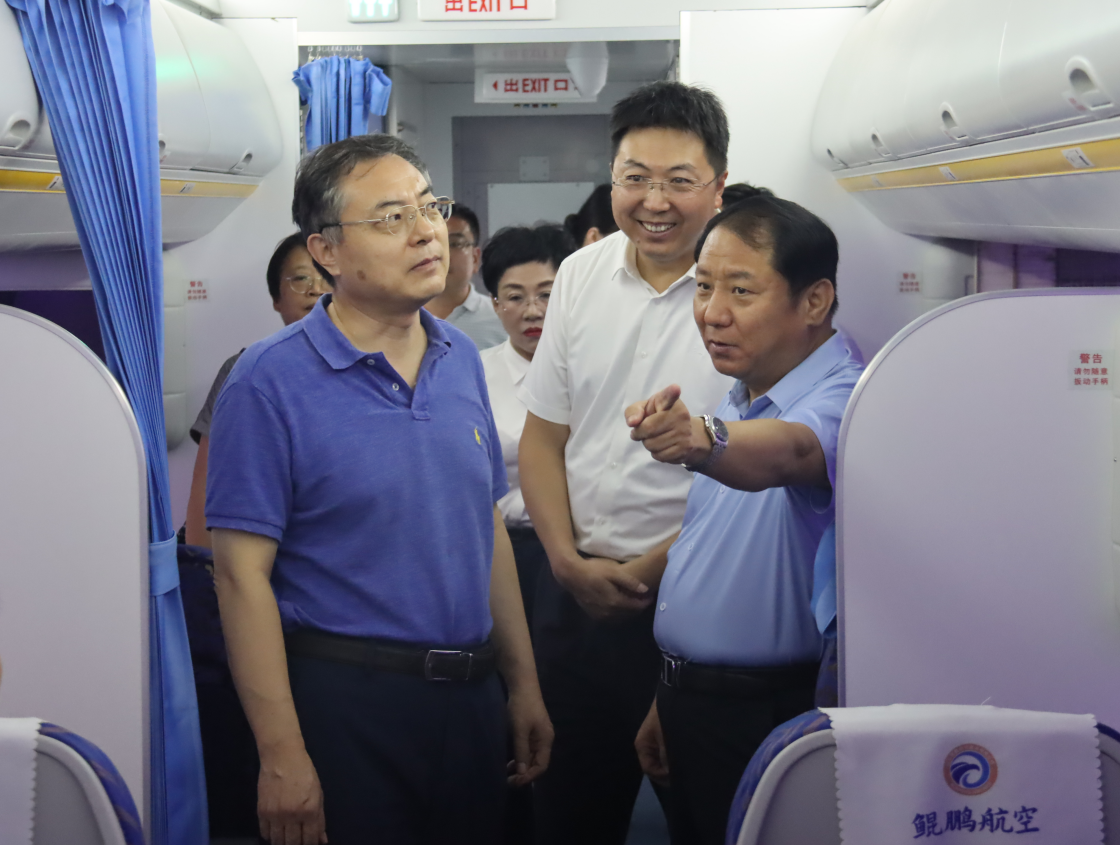 在参观过程中,高峰书记一行进入静态舱进行深度体验,航空服务艺术与管理专业员工模拟对静态模拟舱内驾驶舱、头等舱、经济舱等操作区域进行了详细介绍和实操,并模拟真实起飞前工作场景。静态模拟舱是公司空乘员工进行实践操作的重要场地之一,主要承担客舱服务、紧急处置和安全意识等训练与教学任务,具有客舱设备理论学习、客舱安全理论学习、乘务员控制面板操作训练等功能,为开展客舱服务与管理、客舱安全管理、乘务英语等课程的场景教学和实训教学提供了优越条件。