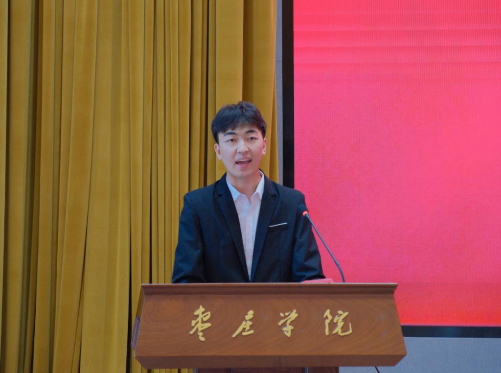 教师代表孙晓彤博士向新生提出三点建议,一要打磨心性,提升专业水平:二要尊师重教、善待他人;三要关心国家、勇于担当,甘于奉献。