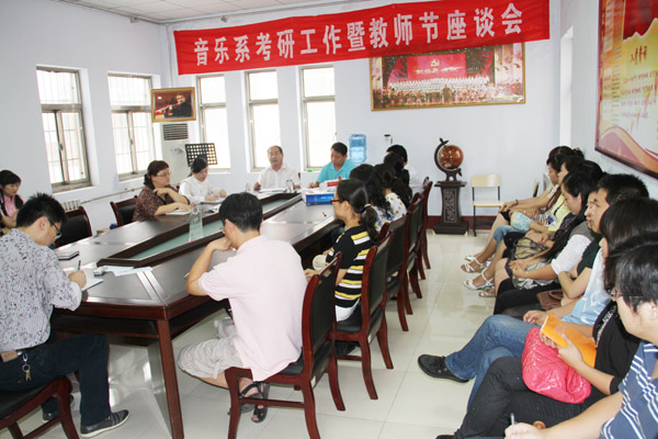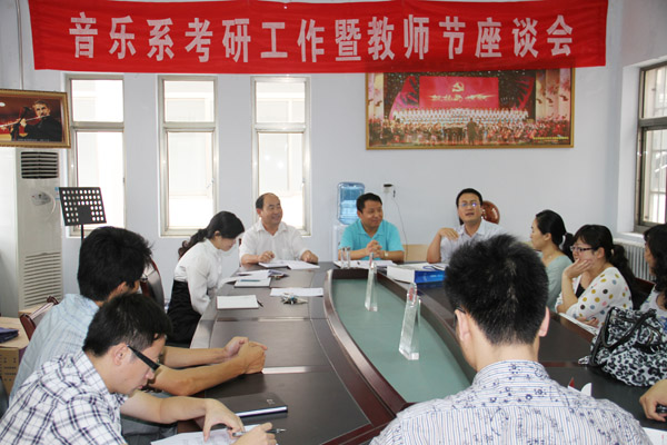 为庆祝第二十六个教师节,9月8日下午2:30,音乐系全体教职工欢聚一堂,畅所欲言,欢庆属于自己的节日。系党总支书记邓兴珍,副主任、副书记李永、副主任吴蕾、郑发奋以及30余名教师参加了会议,座谈会由李永副主任主持。