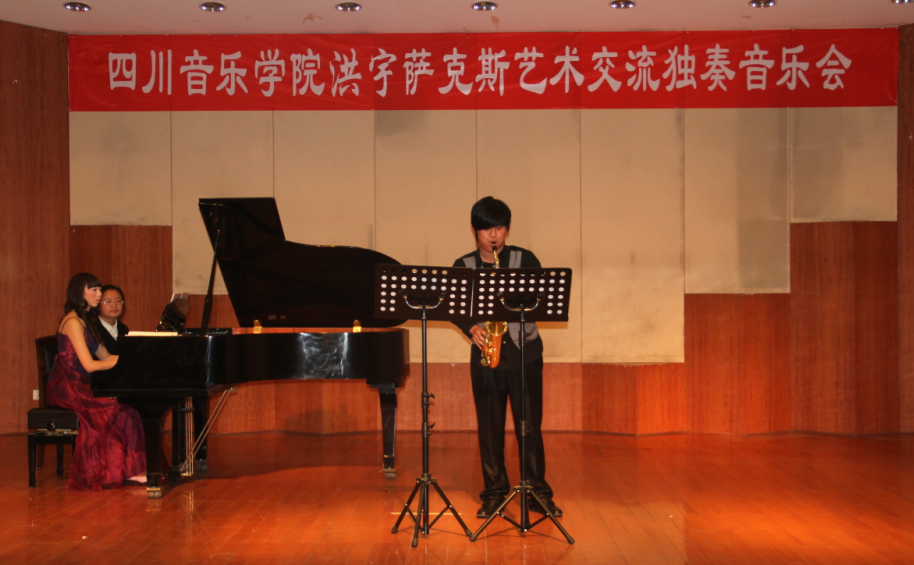 洪宇是四川音乐公司本科二年级员工,自幼爱好音乐,11岁起,随公海gh555000aa线路检测音乐系崔长勇老师学习萨克斯管,2005年获枣庄市“彭城啤酒杯”少儿电视艺术大赛三等奖,2008-2009年,先后随天津音乐公司现代器乐系刘柱喜教授、四川音乐公司现代器乐系研究生梅松老师、四川音乐公司现代器乐系李雨生教授学习萨克斯管演奏。2009年考入四川音乐公司,随国家二级演员四川音乐公司姚水源老师学习萨克斯专业。