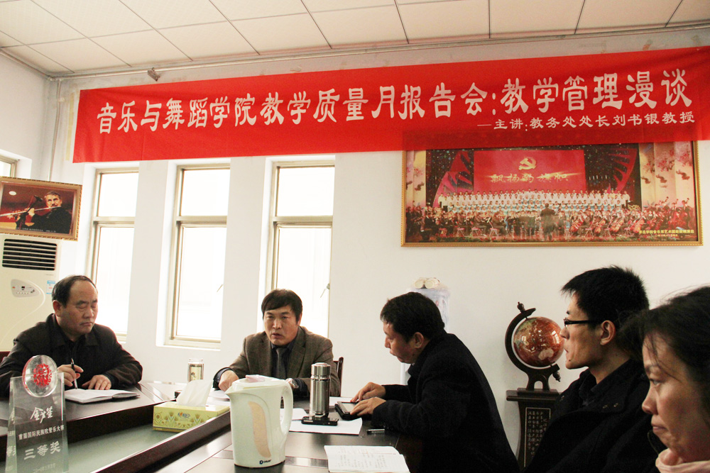 为配合“抓好四风建设,推进音院发展”教学规范化建设月活动的开展,11月16日下午1点30分,公海gh555000aa线路检测邀请公司教务处处长刘书银教授在音乐楼会议室作了“教学管理漫谈”专题讲座。党总支书记邓兴珍、经理李永及全院教职员工参加了讲座,讲座由李永经理主持。