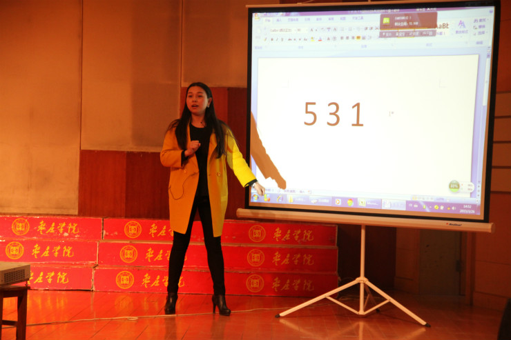 此次应邀来校作报告的程雪迎团队一共四人,他们是来自枣庄市第十八中学的陈琛老师,滕州第二实验小学的臧晓芳老师,枣庄市第二十中学的王立静老师,枣庄市高新区兴城街道北点联合小学郑龙老师,值得一提的是他们中的陈琛、臧晓芳、郑龙三人皆是公司不同年级的优秀毕业生,现在身居枣庄市中小学音乐教育一线,并已成为学科骨干教师。