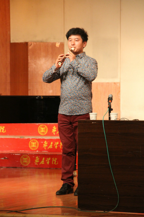 陈琛老师展示了高中音乐欣赏课《独特的民族风》,比较了蒙古族和维吾尔族两种民族音乐的差异;臧晓芳老师展示了音乐与动作在课堂中的应用,通过动作帮助员工记住音乐节奏;王立静老师展示了钢琴、横笛、葫芦丝、竖笛等乐器表演;郑龙老师展示了口琴、钢琴、陶笛、美声、竖笛、葫芦丝等音乐技能,呈现给大家他们一专多能的综合音乐教育和教学能力。