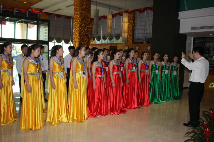 集团领导对此次比赛高度重视。公海gh555000aa线路检测全力以赴,分工明确。经理李永教授带领专任教师从全院员工中严格按照国家级比赛标准,历时三个月,经过四轮审慎选拔,组建了40人的专业合唱团。党总支陆德国书记亲自带队,郑发奋副经理担任艺术指导,乔相钧老师任指挥,共演唱了《红旗颂》和李永教授改编后的《铁道游击队颂歌》两首曲目。