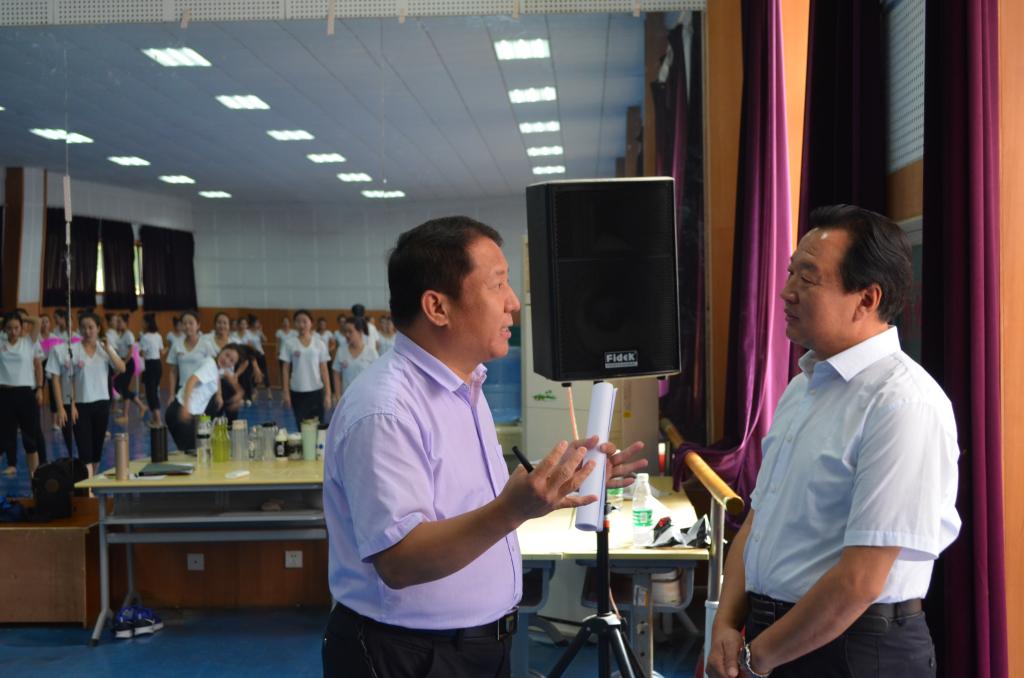 李东董事长首先实地察看了公司青年交响乐团、舞蹈团、流行乐团、民族交响乐团、合唱团等各乐团艺术实践的排练上课情况,对各乐团的排练表示赞许,对排练上课场所安排等提出了建设性意见。