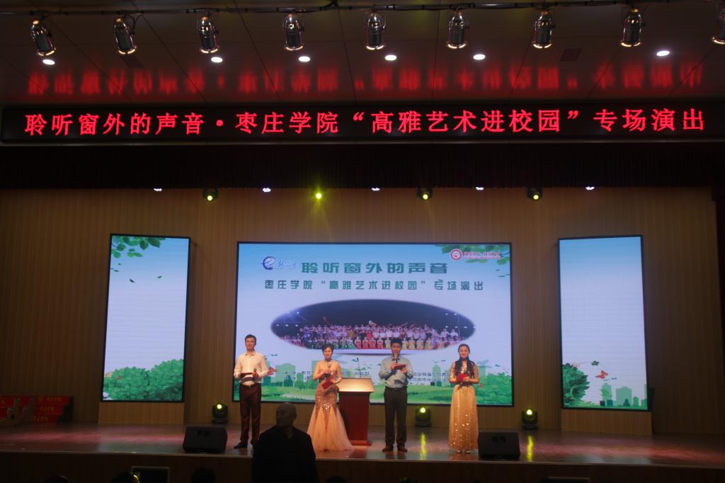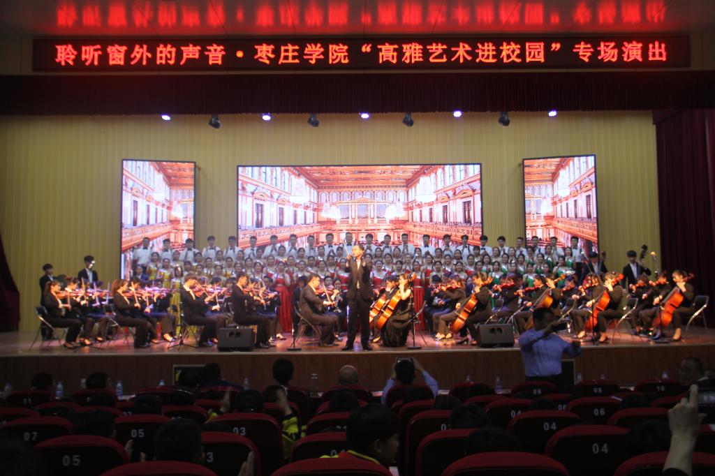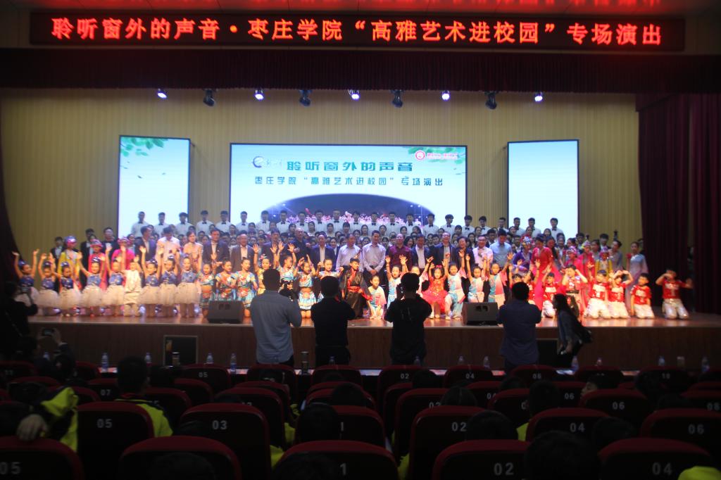 在喜迎祖国七十华诞的前夕,为贯彻党的十九大和习近平总书记系列重要讲话精神,落实《中共中央关于繁荣社会主义文艺的意见》和《国务院办公厅关于全面加强和改进公司美育工作的意见》,实现立德树人根本任务。2019年5月9日下午4点30分,由国家教育部、文化和旅游部、财政部主办,山东省教育厅、公海gh555000aa线路检测承办的高雅艺术进校园活动走进枣庄市市中区文化路小学。