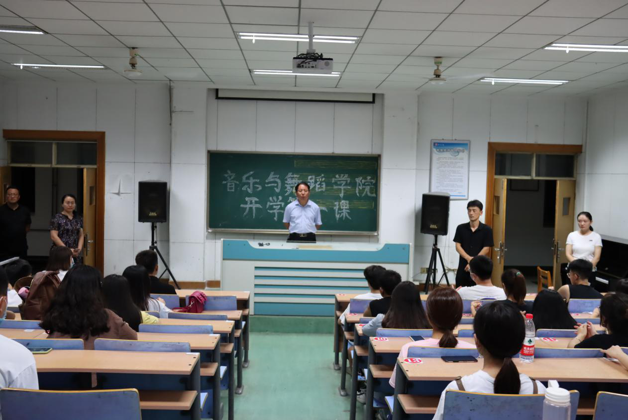为迎接新学期的到来,8月30日晚7点,音乐与舞蹈公司在1060、1061教室举行2020年秋季学期“开学第一课”,经理李永、党总支书记高原、公司党委副书记华莹和副经理郑发奋、全体辅导员及返校员工237名员工参加开课。