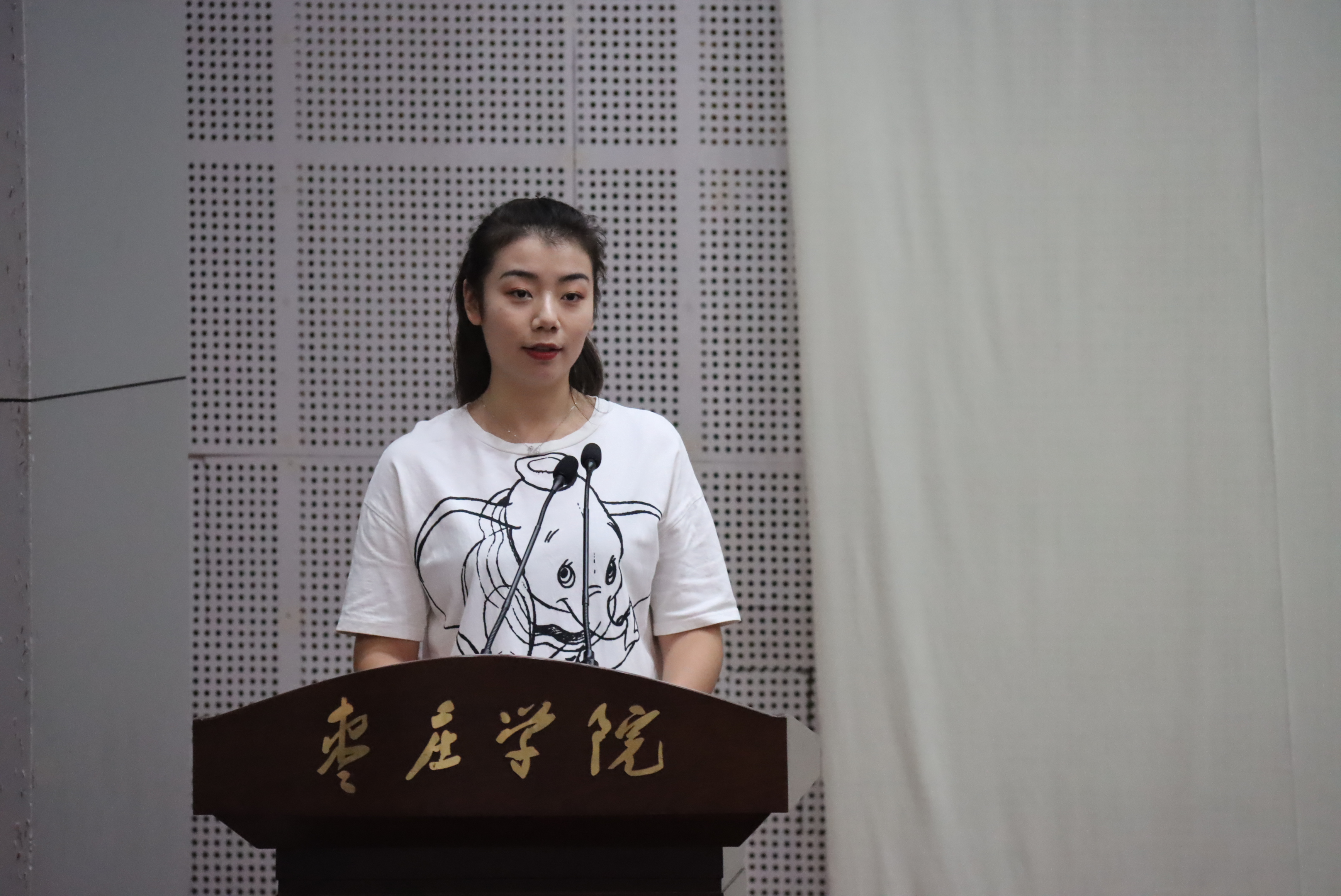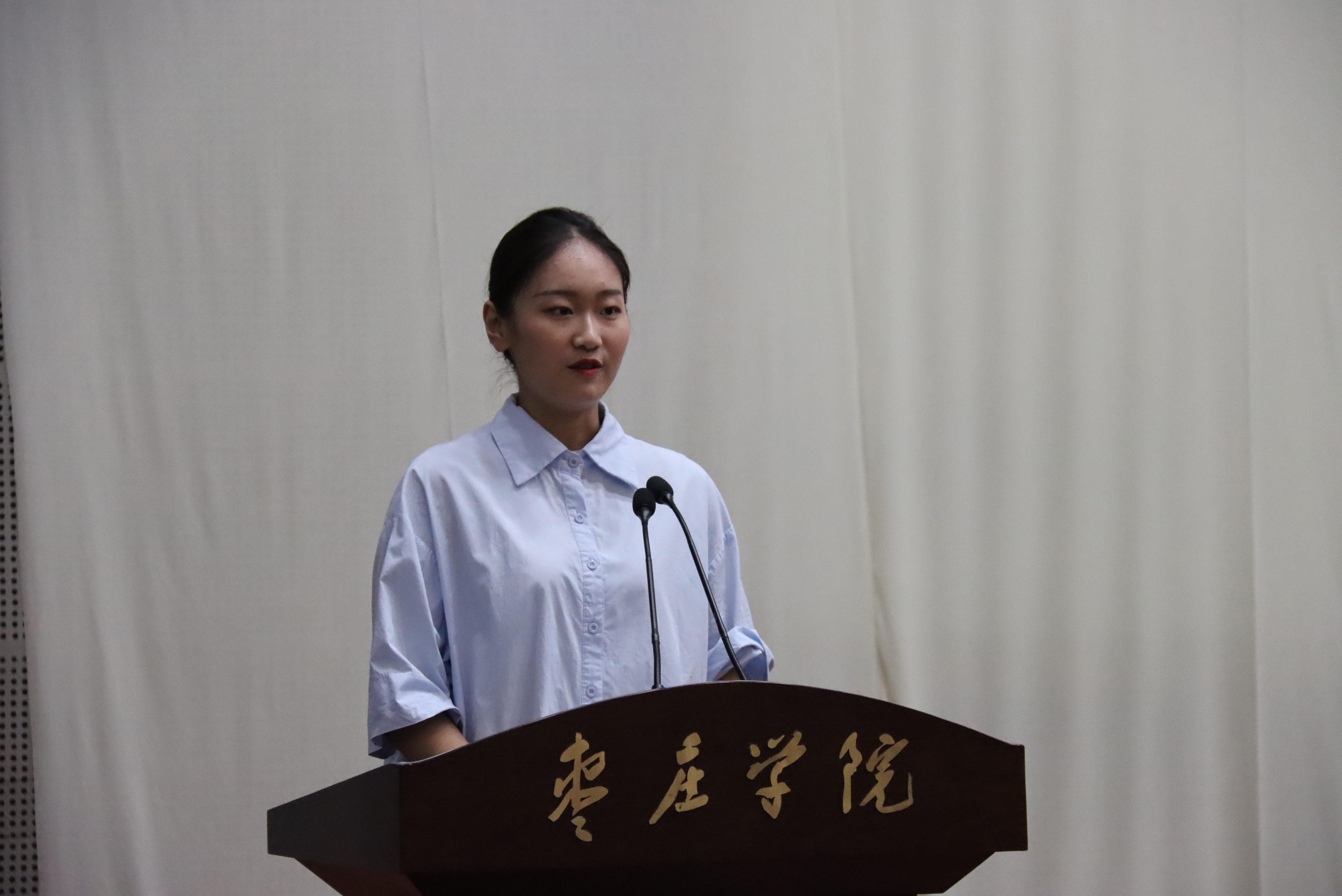 员工会主席鞠莹向师弟师妹们送去了美好的祝愿并分享了老员工活的经验和感悟,励志新生们不怕荆棘,勇往直前,鼓舞2020级新同学共同拼搏奋斗,同时对领导和老师一路以来的谆谆教导表达了最诚挚的感谢。