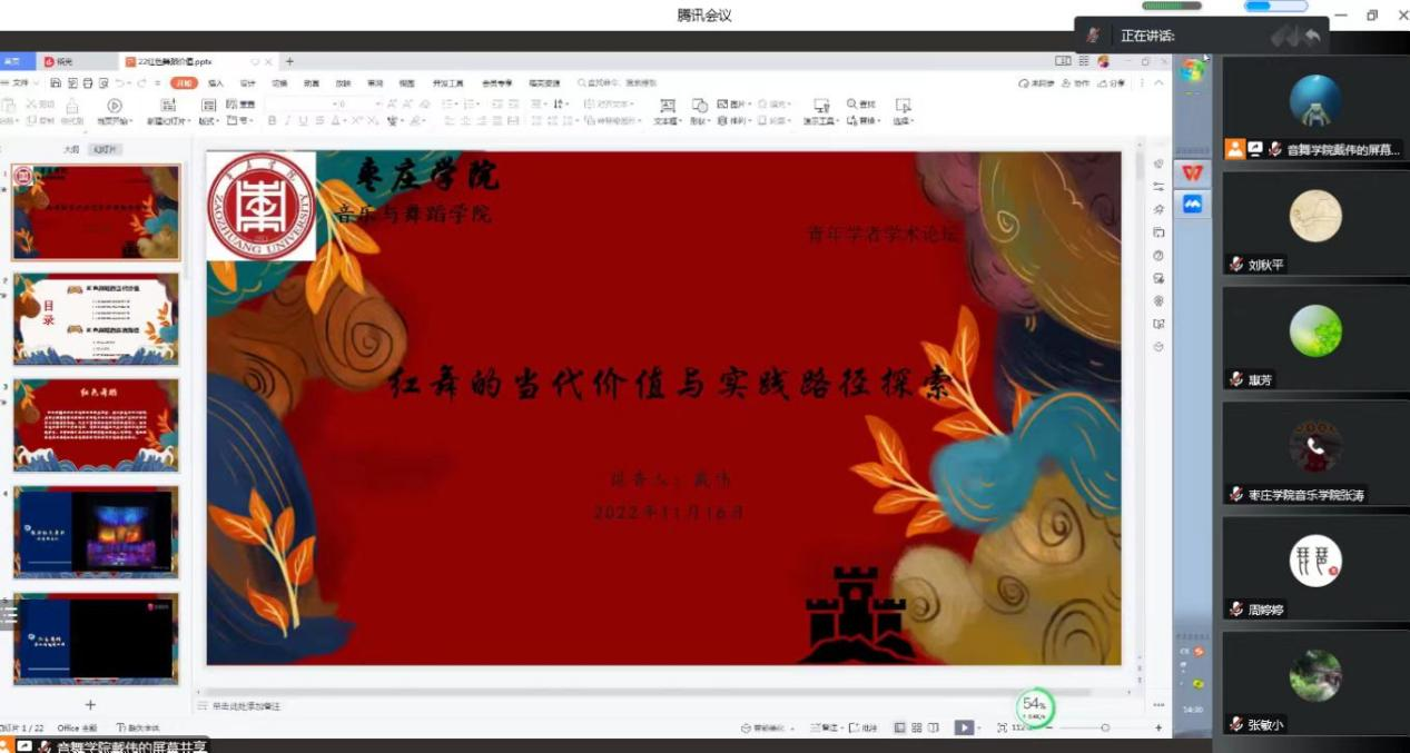 11月16日公海gh555000aa线路检测青年学者学术论坛第三场《红舞的当代价值与实践路径探索》通过线上腾讯会议展开。此次讲座由公海gh555000aa线路检测戴伟博士主讲,全体教师和部分员工代表参加。