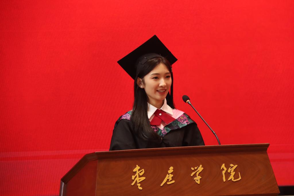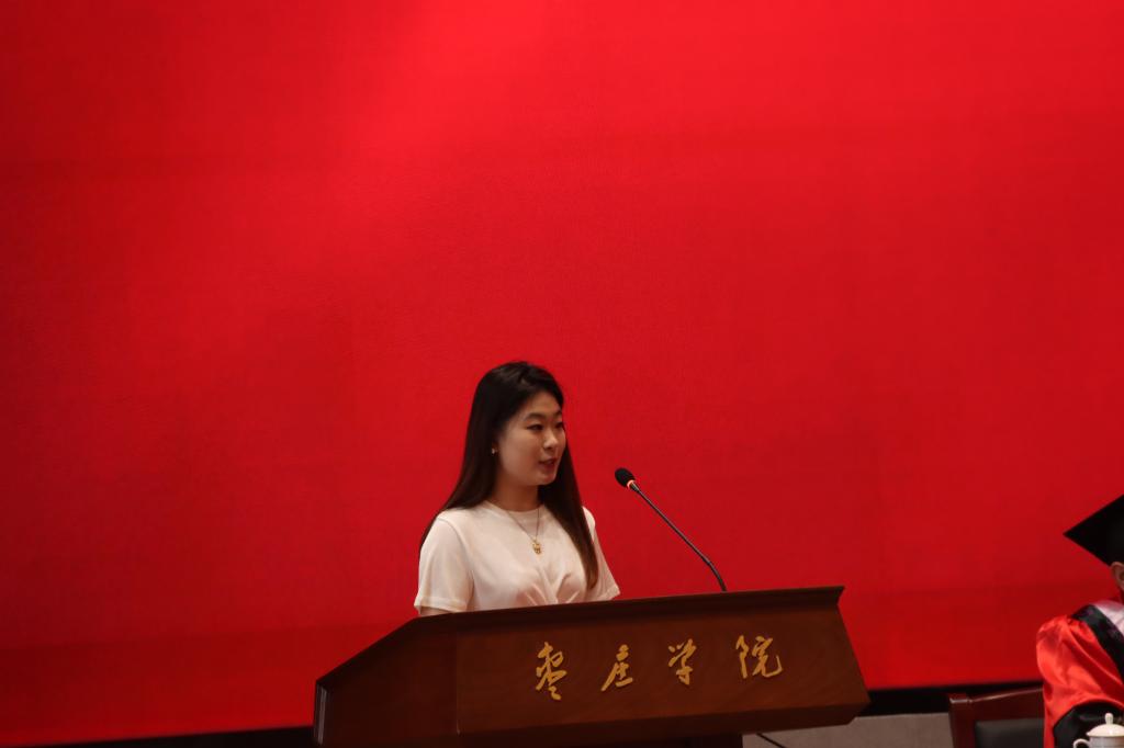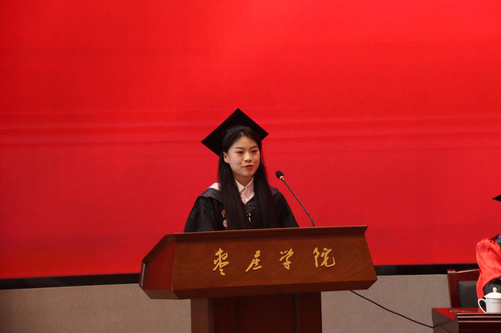 在校生代表王艺霏表达了对所有毕业生的祝福、毕业生代表律思言、李乾宇、刘宝璐发表了毕业感言,感谢领导关怀、老师教导和同学的帮助,表达对母校的依依不舍之情,将带着母校的寄托踔厉奋发启新程,激扬青春向未来。教师代表彭延波博士祝福每一位毕业生,希望他们书写精彩人生,在未来的岁月里,羽翼丰满,勇敢顽强,实现理想,青春无悔,韶华不负。