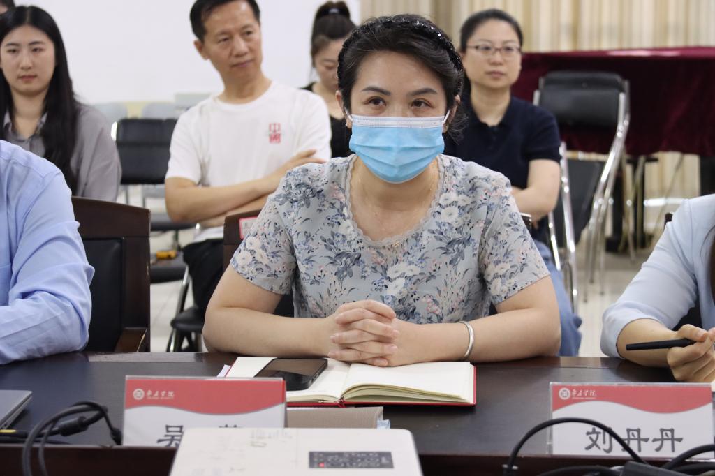 吴蕾经理在座谈中汇报了公司教学获奖情况和科研项目建设现状,并表示公司以科研、文化传承、非遗、实习实践等方面服务地方取得一定成绩,将全力以赴冲刺硕士点授予单位建设。