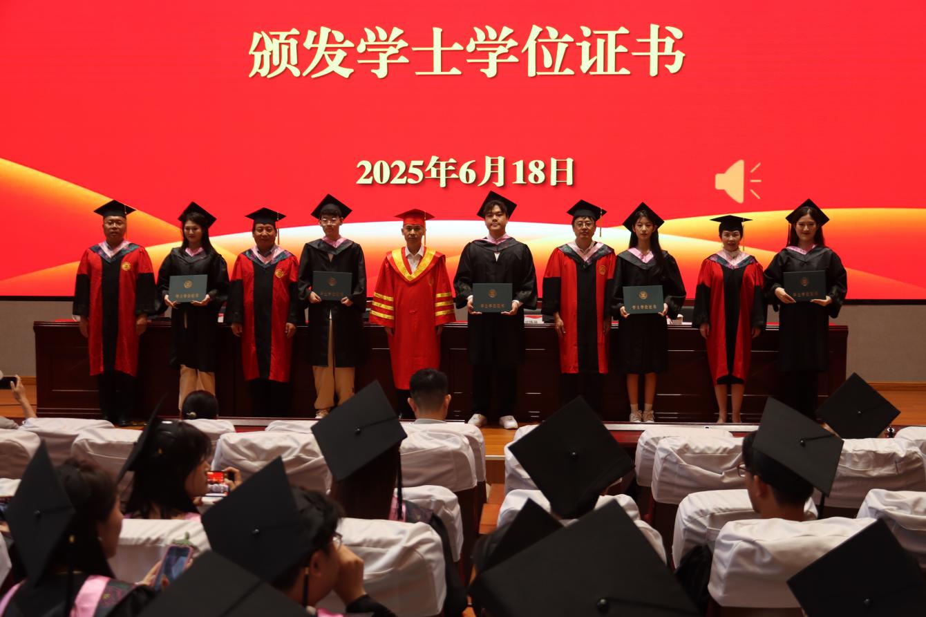 四载芳华,今朝启航。2025届毕业典礼暨学士学位授予仪式在全场热烈的掌声中圆满落下帷幕。毕业生们与莅临典礼的领导、老师握手道别,真挚表达对母校的感恩之心,并一致表示,将承载着母校的祝福与期许,肩负时代使命踏上新的人生征程,在各自领域书写无愧于青春的华彩篇章。