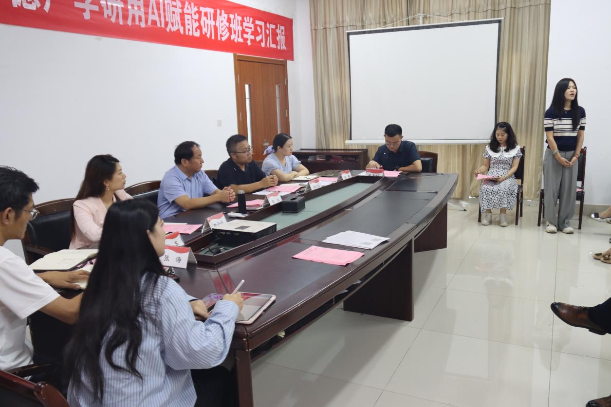 会议第二阶段,公司进行中德产学研用AI赋能研修班学习汇报,顾潇、石硕两位教师分享了本次学习的主要内容和心得体会,带领全体教师进行学习。