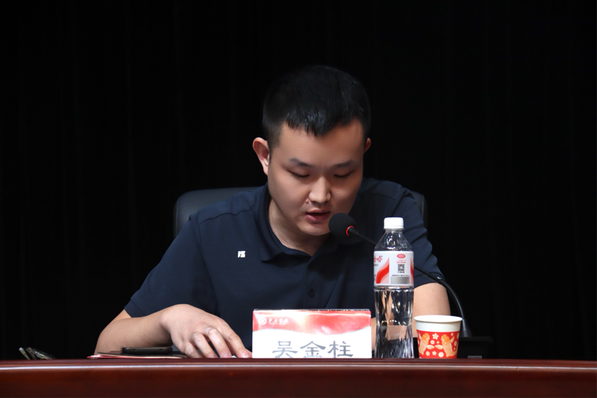 副科级辅导员吴金柱宣读2025级员工军训告知书,围绕免训及请假规定、着装标准等方面展开解读,并明确告知员工信息反馈渠道,确保员工在军训期间的合理诉求能及时传递、相关疑问可有效解决。