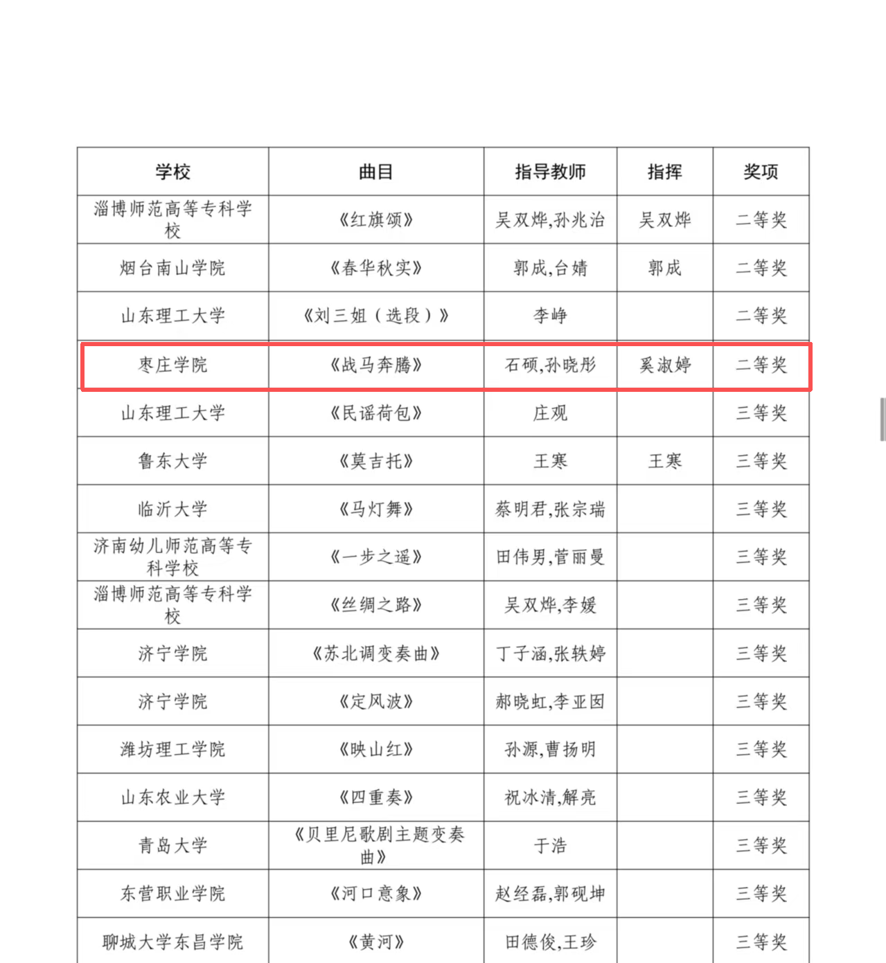 近年来,公司持续深化艺术实践教学改革,此次获奖再次印证了公司“以赛促教、以赛促学”办学理念的成效,为公司“两升一创”战略布局贡献了音舞力量。展望未来,公司将以此次获奖为契机,进一步加强鲁南音乐舞蹈文化的挖掘与创新,通过音乐、舞蹈、戏剧等多元形式,讲好枣庄故事,培养更多“扎根地方、服务社会”的高素质应用型艺术人才。