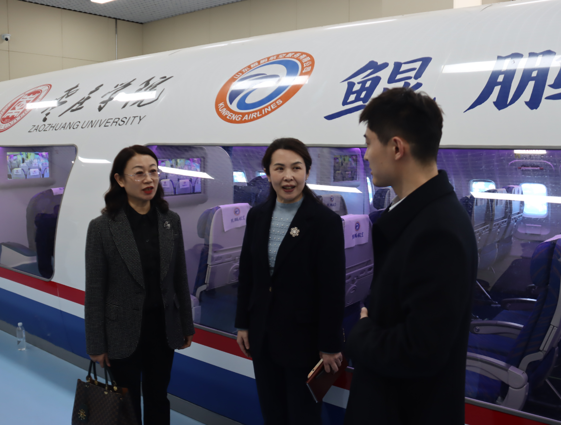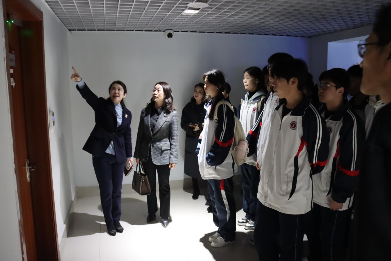 仪式结束后后,吴蕾经理带领枣庄九中一行参观了公司智慧琴房、舞蹈房、空乘静态模拟舱等教学实验场所。