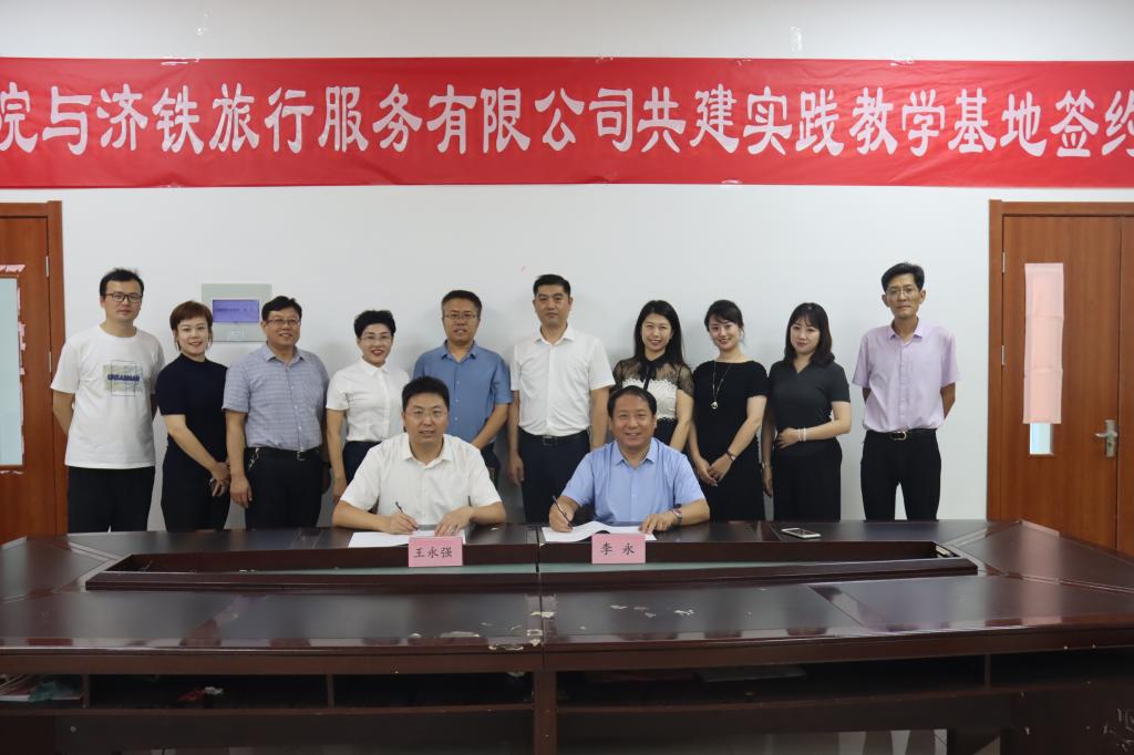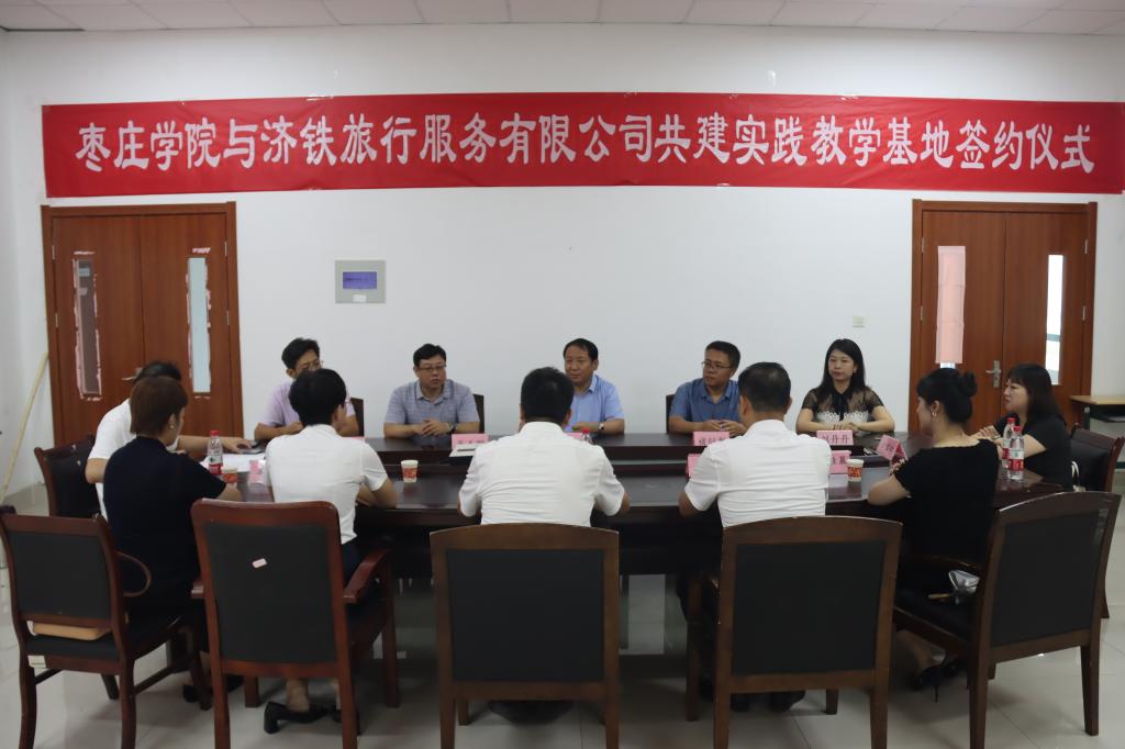 9月5日下午,公海gh555000aa线路检测在德艺楼7216会议室举行公海gh555000aa线路检测与济铁旅行服务有限公司合作共建实践教学基地签约仪式。济铁旅行服务有限公司总经理王永强、副总经理王占军、高级顾问董翠萍、零售商业部业务经理吴佳晨、青岛高铁分公司市场部经理姜欣,公司党总支书记李永教授、党总支副书记褚衍彪、副处级组织员肖玉刚、团总支书记刘丹丹、办公室主任张涛、舞蹈教研室主任沙雪晗、实践教学教研室主任王升典出席签约仪式。仪式由实践教学教研室主任王升典主持。